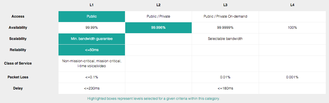 Availability: Indicates the “guaranteed” level of uptime of the network access.