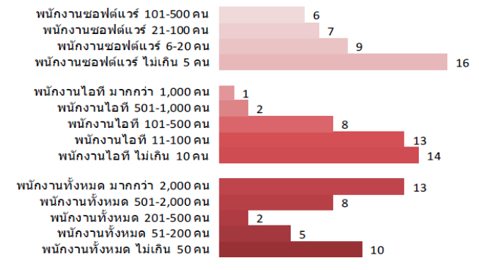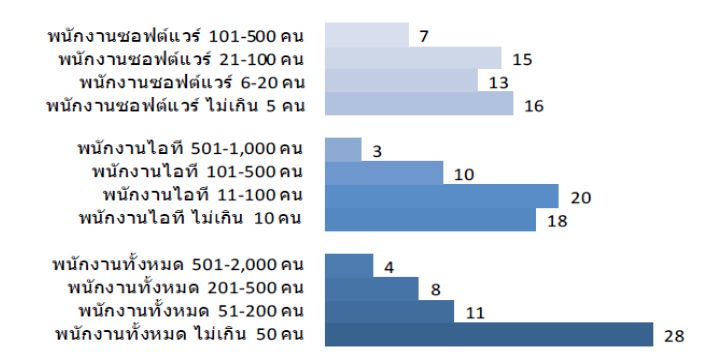 รูปที่ 1) จำนวนของพนักงานไอทีและพนักงานที่ทำงานเกี่ยวกับซอฟต์แวร์ภายในองค์กร ของบริษัท/หน่วยงานในอุตสาหกรรมไอที