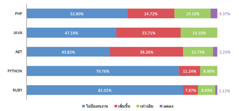 รูปที่ 4) แนวโน้มการวางแผนงานขององค์กรสำหรับบุคลากรด้านการพัฒนาโปรแกรมสำหรับภาษาคอมพิวเตอร์ต่างๆ