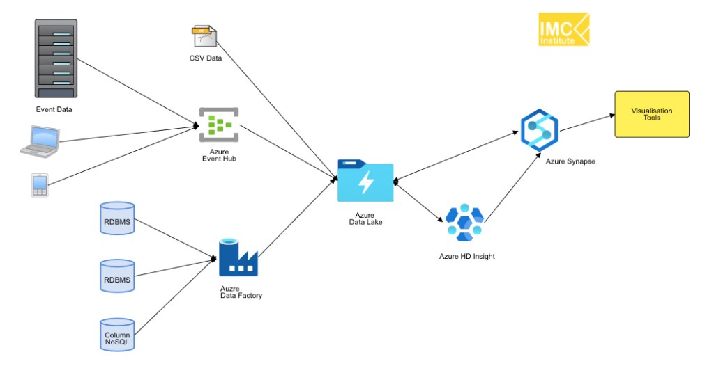 แต่ในกรณีของผู้ให้บริการ Public cloud จะมีบริการ Data Warehouse ทีสามารถรองรับข้อมูลขนาดใหญ่ได้ในราคาที่ถูกกว่า ทำให้ในบางกรณีเราสามารถที่จะออกแบบสถาปัตยกรรม Big Data โดยใช้ Data Warehouse as a Service อย่าง Google BigQuery หรือ Azure Synapse ได้ ดังตัวอย่างในรูปที่ 1