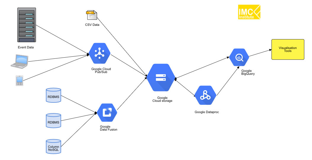 - Fully managed ETL service อย่าง Azure Data Factory หรือ Google Cloud DataFusion ที่จะทำหน้าที่ดึงข้อมูลจากแหล่งต่างๆเข่น RDBMS อย่าง MySQL ซึ่งอาจจะอยู่บนระบบ On-Premise หรือ Public Cloud แล้วทำการแปลงข้อมูลให้อยู่ใน Format ที่ต้องการก่อนโหลดเข้า Data Warehouse