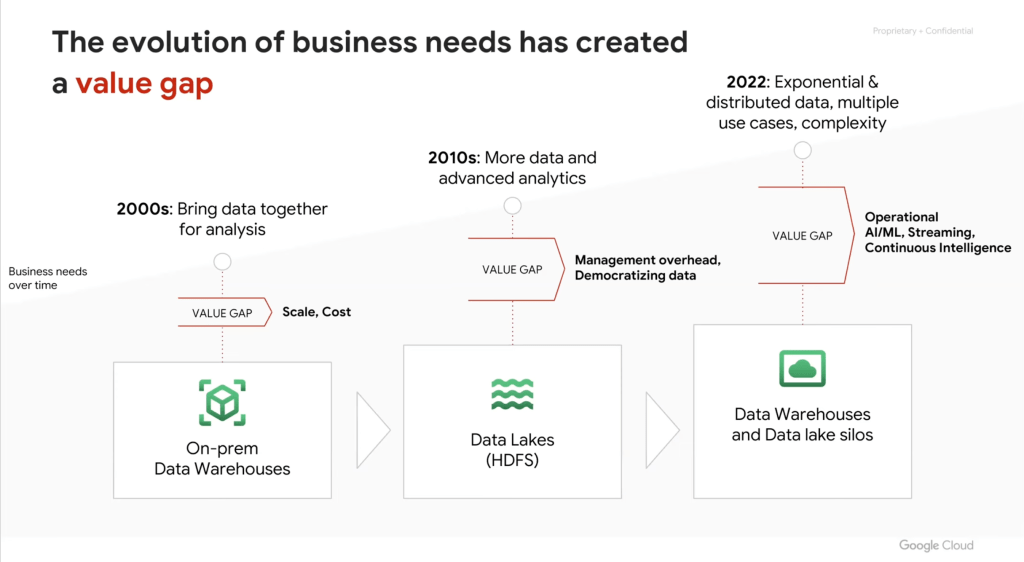 - Use case ในการใช้ข้อมูลมีความหลากหลายกว่าเดิม ต้องการเทคโนโลยีที่ใช้ในการวิเคราะห์ข้อมูลและบริหารข้อมูลที่ต่างกัน และอาจต้องรองรับผู้ใช้ที่หลากหลายขึ้น เช่น Data Warehouse อาจเหมาะกับการทำ BI หรือ SQL ส่วน Data Lake อาจเหมาะกับการทำ Machine Learning หรือการแปลง Data