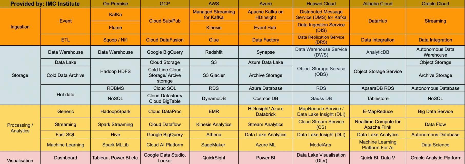 โดย Cloud Data Platform สำหรับผู้ให้บริการ Cloud สามรายหลักคือ Microsoft Azure, Google Cloud Platform และ AWS, Huawei Cloud, Alibaba Cloud และ Oracle cloud จะได้ Block diagram ดังรูปที่ 2 – 7