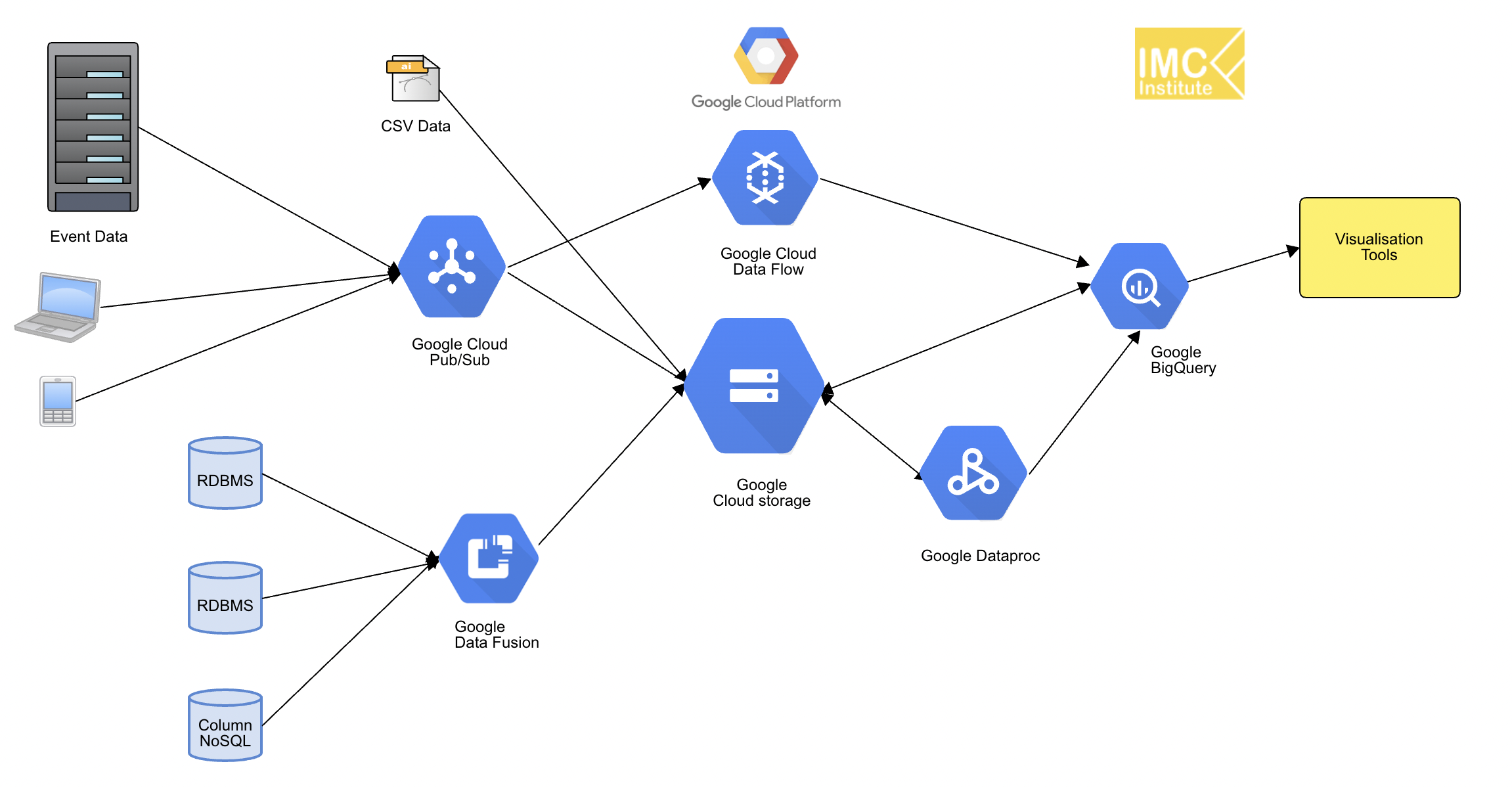 - Storage ในการเก็บข้อมูลที่อาจแบ่งเป็น Fast storage สำหรับข้อมูลแบบ Streaming และ Data Lake สำหรับข้อมูลแบบ Batch