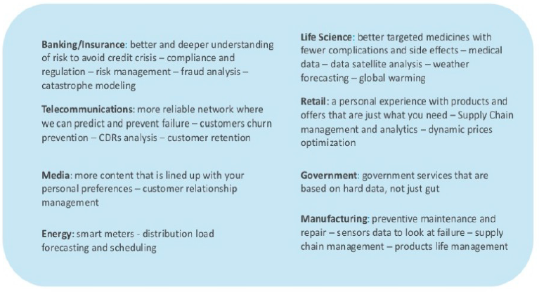 - กรณีที่ข้อมูลที่ต้องการวิเคราะห์ส่วนใหญ่เป็นข้อมูลภายนอกที่อยู่บน Cloud เช่นการวิเคราะห์ข้อมูลจาก Facebook ที่การนำข้อมูลขนาดใหญ่เหล่านั้นกลับมาเก็บไว้ภายในจะทำให้เปลืองเนื้อที่และล่าช้าในการโอนย้ายข้อมูล